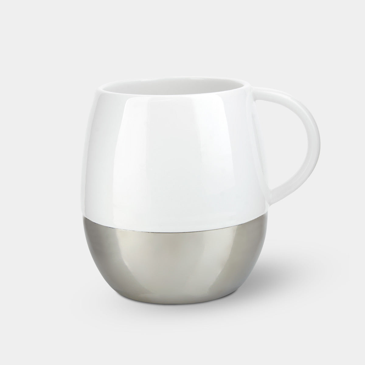 Taza de porcelana y base de acero inoxidable. Incluye caja de regalo. No usar en microondas ni lavavajillas.