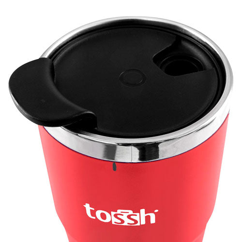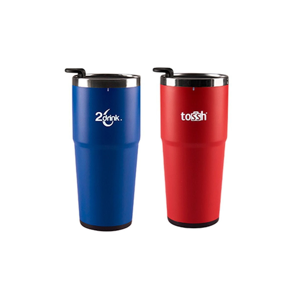 Doble pared. Pared interior acero inoxidable, pared exterior plastico. Tapa de plastico en dos posiciones. Indicador de grabado para el sensor de luz led, el logo se enciende al grabar. Cuenta con boton de encendido en la base. Incluye bateria (1 de boton), instructivo y caja individual. No usar en microondas ni lavavajillas.