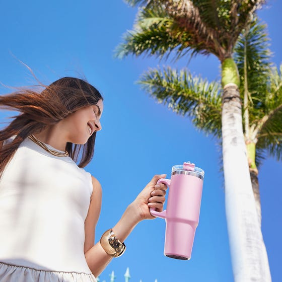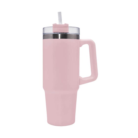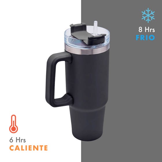 Doble pared. Cerrado al vacío. Pared interna y externa acero inoxidable. Tapa de plástico con cierre de rosca y sobretapa giratoria de 3 posiciones con ranura para popote. Incluye popote y asa de plástico. Mantiene temperatura caliente 6 hrs y temperatura fría 8 hrs aproximadamente. Incluye caja individual.