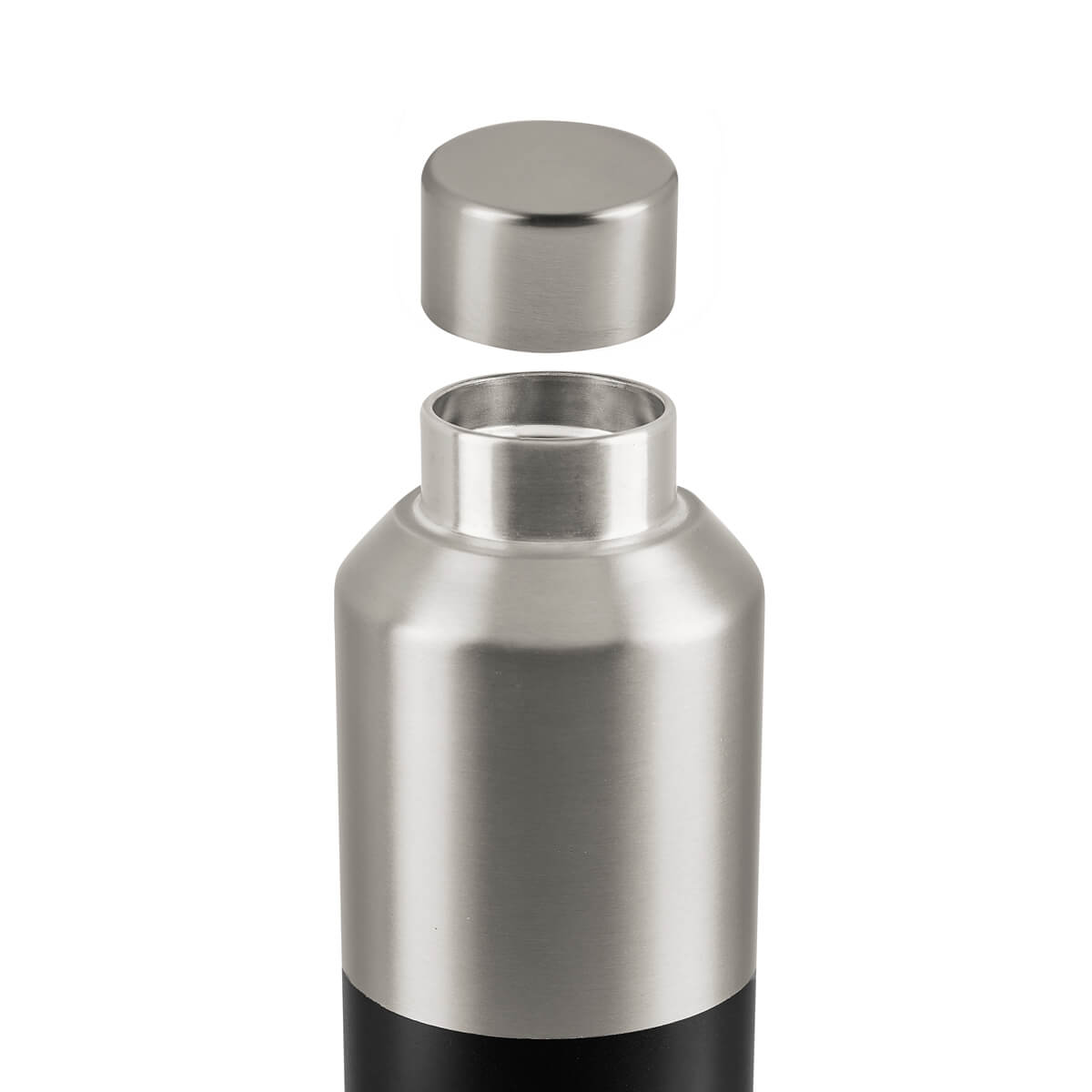 Termo doble pared. Cerrado al vacío. Pared interna y externa acero inoxidable. Tapa metálica con sistema de rosca. Mantiene la temperatura caliente por 8 hrs y la temperatura fría por 12 hrs. Capacidad 21 Oz. Su diseño monocromático le otorga un toque elegante y sofisticado, pero a su vez moderno y actual. Incluye caja individual.