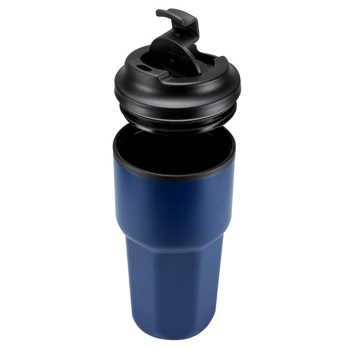 Doble pared. Pared interna plástico, pared externa acero inoxidable. Base de termo con forma hexagonal. Tapa de plástico con boquilla y sobre tapa de cierre a presión. Terminado mate. Incluye caja individual