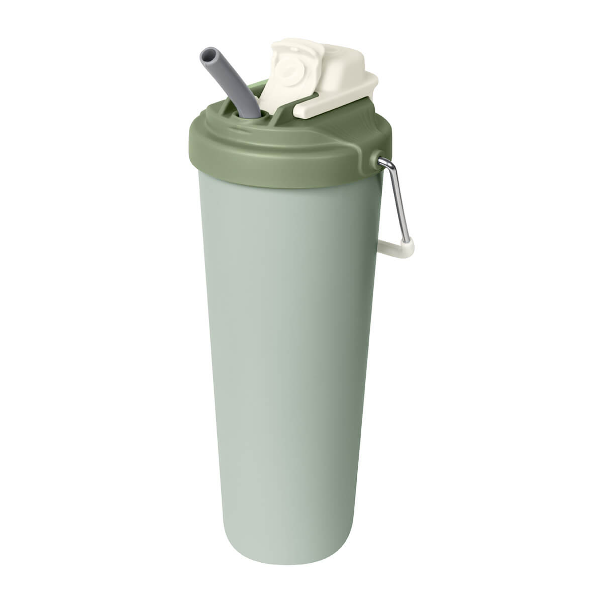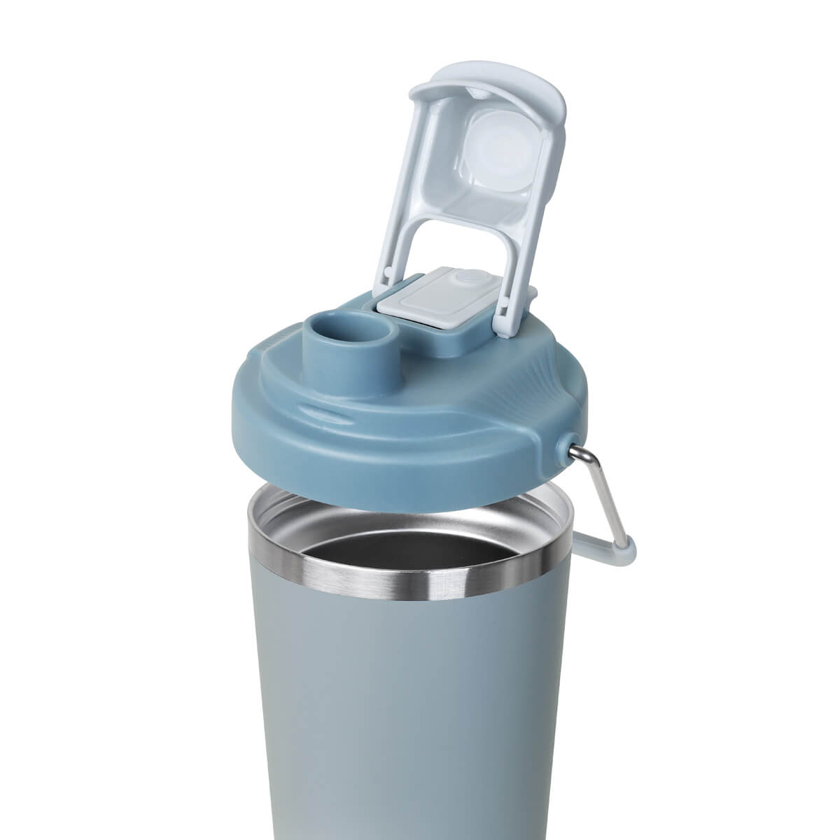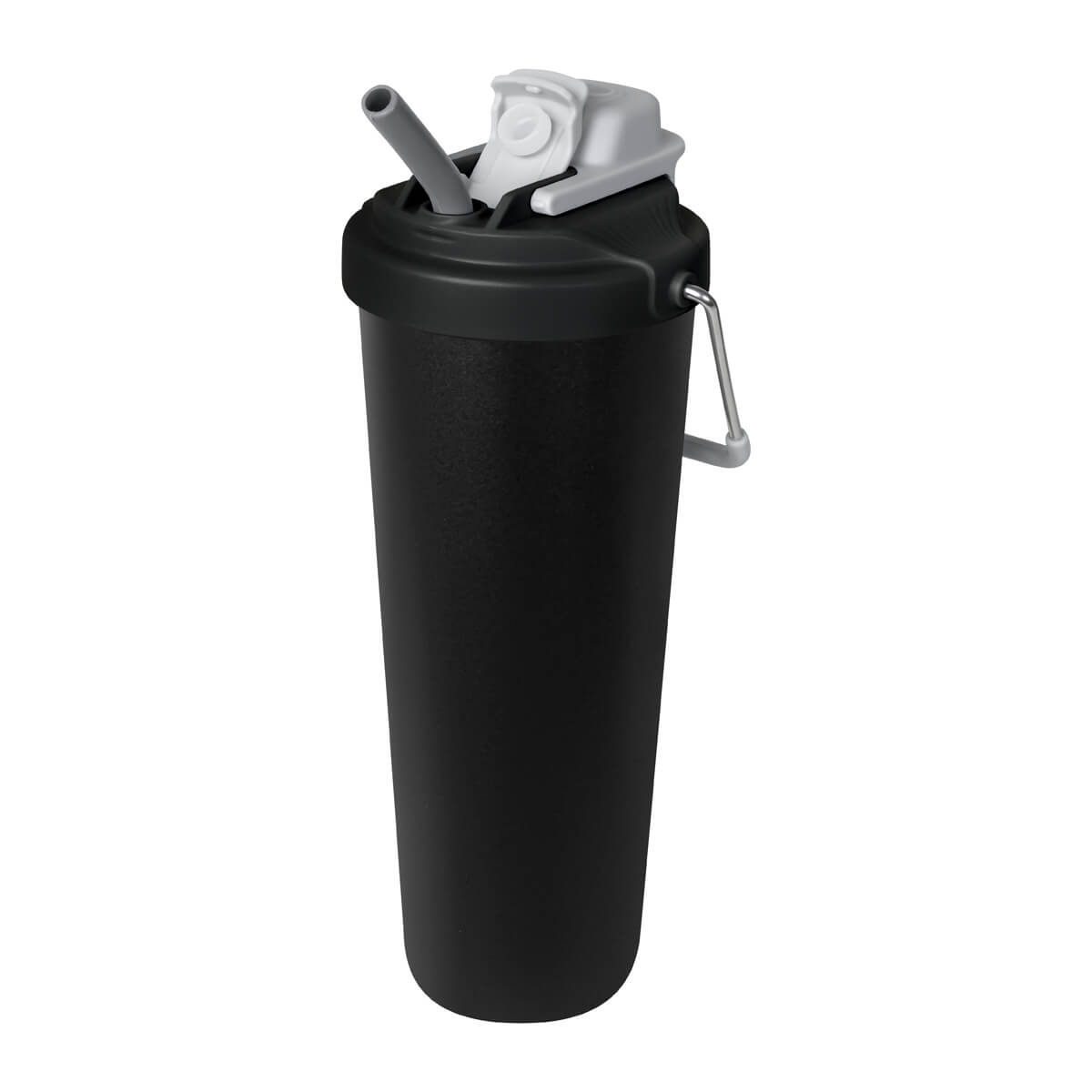 Termo doble pared. Cerrado al vacío. Pared interna y externa acero inoxidable. Cuerpo con terminado rugoso. Tapa de plástico con sistema de rosca y doble sobretapa con cierre push, una con boquilla para beber y otra con ranura para popote. Agrega un asa metálica con recubrimiento de silicón para llevarlo contigo a todos lados. Mantiene la temperatura caliente por 4 hrs y la temperatura fría por 8 hrs. Capacidad de 25 Oz. Base de 7 cm de diámetro. Incluye caja individual.