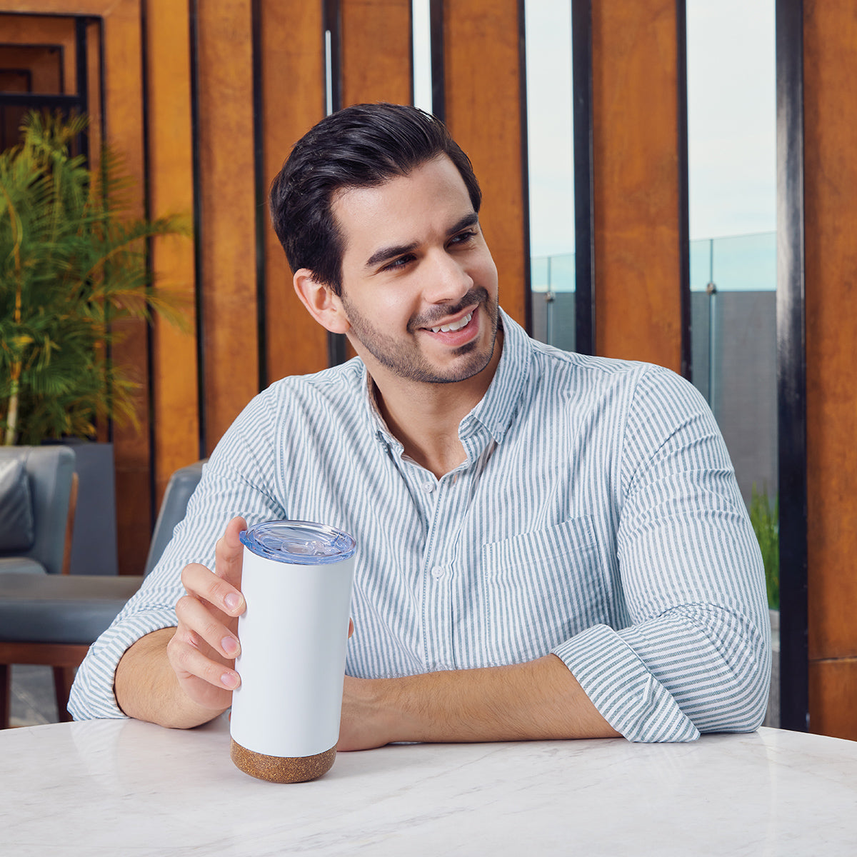 Doble pared. Cerrado al vacío. Pared interna y externa acero inoxidable. Base de corcho. Incluye tapa de plástico con válvula de seguridad. Mantiene temperatura caliente 6 hrs y temperatura fría 8 hrs aproximadamente. Incluye caja individual.
