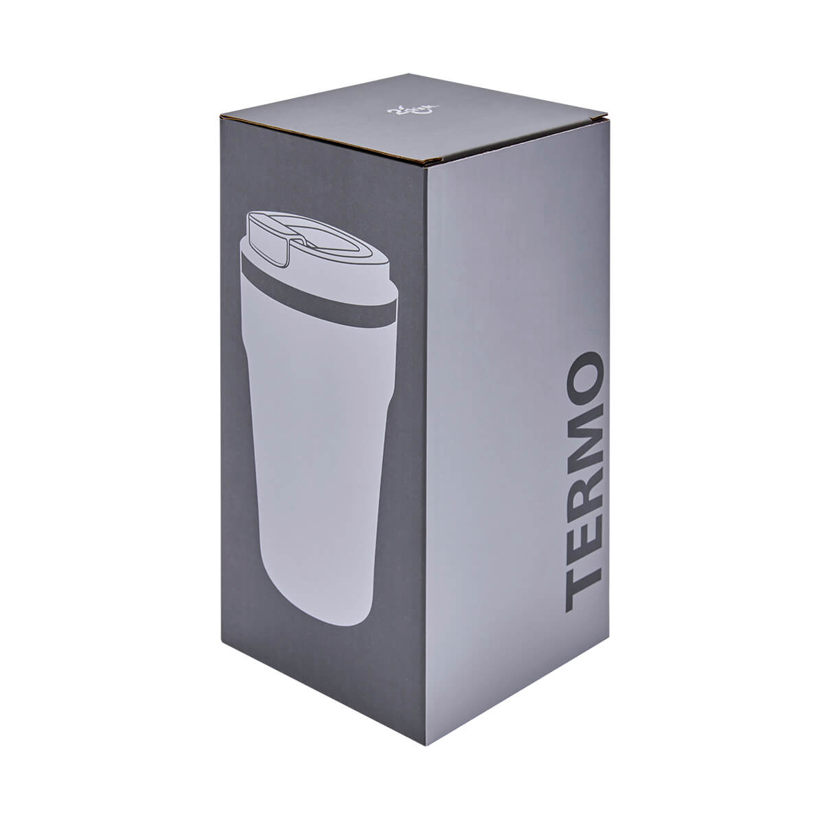 Doble pared. Cerrado al vacío. Pared interna de acero inoxidable y recubrimiento de cerámica. Pared externa de acero inoxidable. Tapa de plástico con cierre de rosca y válvula de seguridad con cierre de presión. Mantiene temperatura caliente y fría 6 hrs aproximadamente. Incluye caja individual.