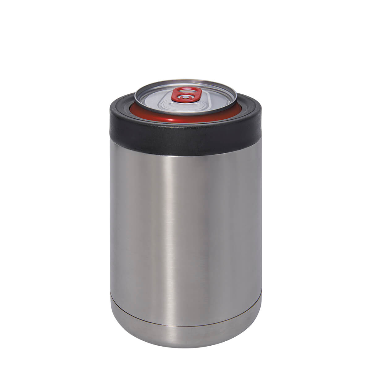 Doble pared. Cerrado al vacío. Pared interna y externa de acero inoxidable. Tapa de plástico con válvula de seguridad y tapa para usar de portalatas con tamaño de 355ml. Mantiene temperatura caliente 6 hrs y temperatura fría 8 hrs aproximadamente. Incluye caja individual.