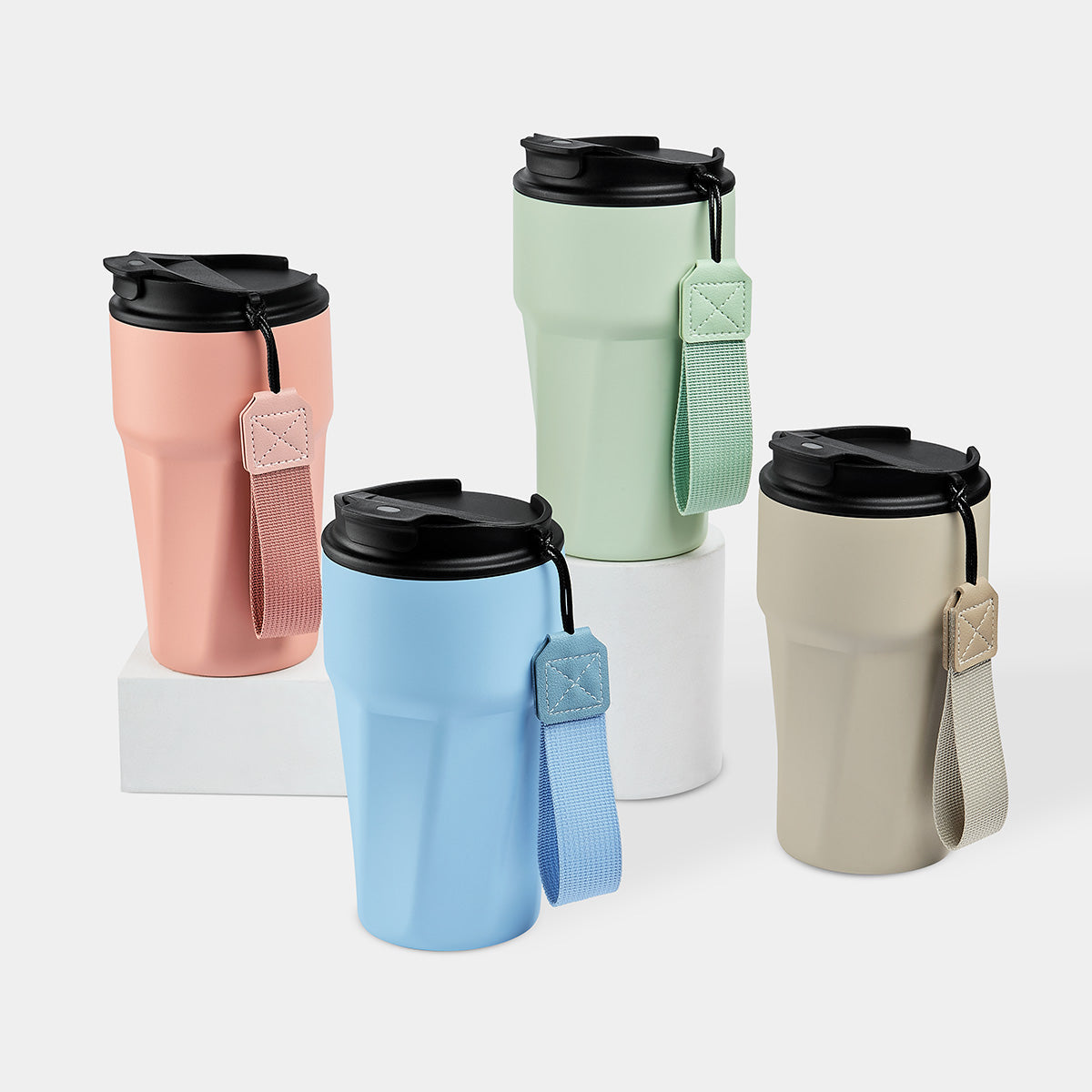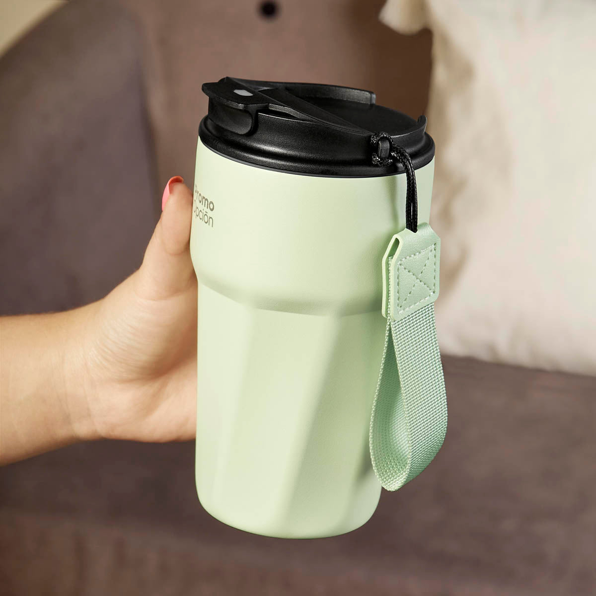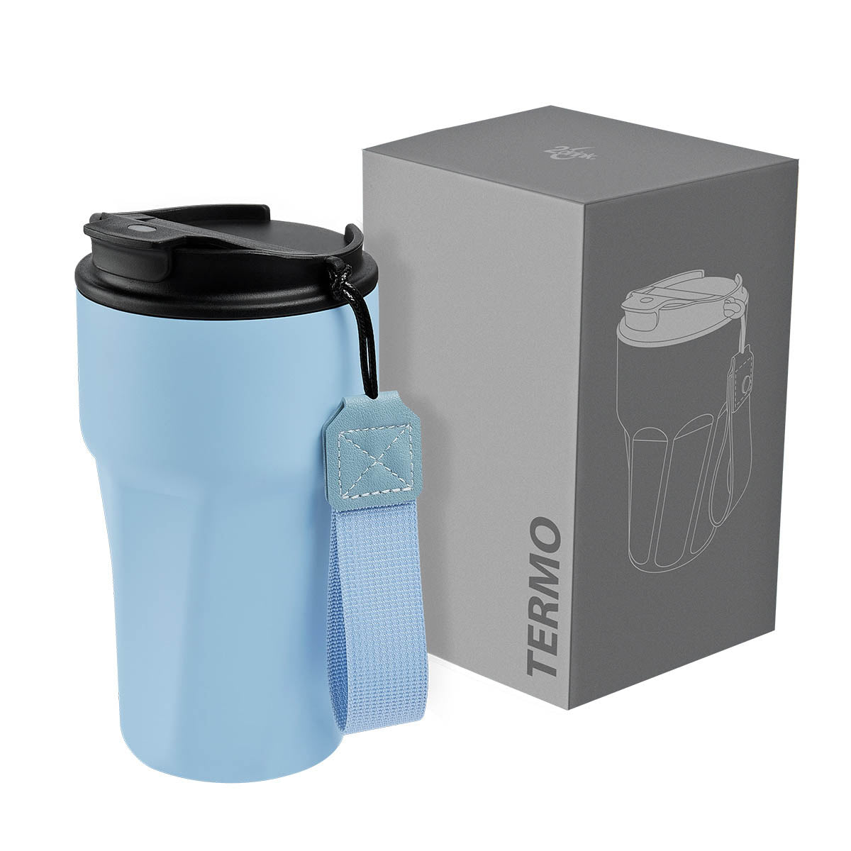 Termo doble pared. Cerrado al vacío. Pared interna y externa de acero inoxidable. Terminado rugoso tipo powder. Tapa de plástico con cierre de rosca, sobretapa con sistema push para evitar derrames. Además, cuenta con un asa de poliéster para una cómoda transportación. Mantiene la temperatura caliente por 8 hrs y temperatura fría por 12 hrs. Capacidad de 15 Oz. Base de 7.2 cm de diámetro. Incluye caja individual.