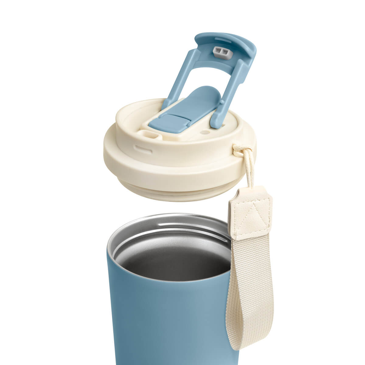 Termo doble pared. Cerrado al vacío. Pared interna y externa acero inoxidable. Tapa de plástico con sistema de rosca y doble función que incluye, boquilla sencilla con sobretapa de cierre push y boquilla para popote con sistema plegable, para mantenerlo seguro y limpio. Su asa lateral permite llevarlo contigo facilmente y le proporciona un toque de modernidad. Mantiene la temperatura caliente por 6 hrs y la temperatura fría por 8 hrs. Capacidad de 17 Oz. Base de 7.3 cm de diámetro. Incluye popote de plástico y caja individual.