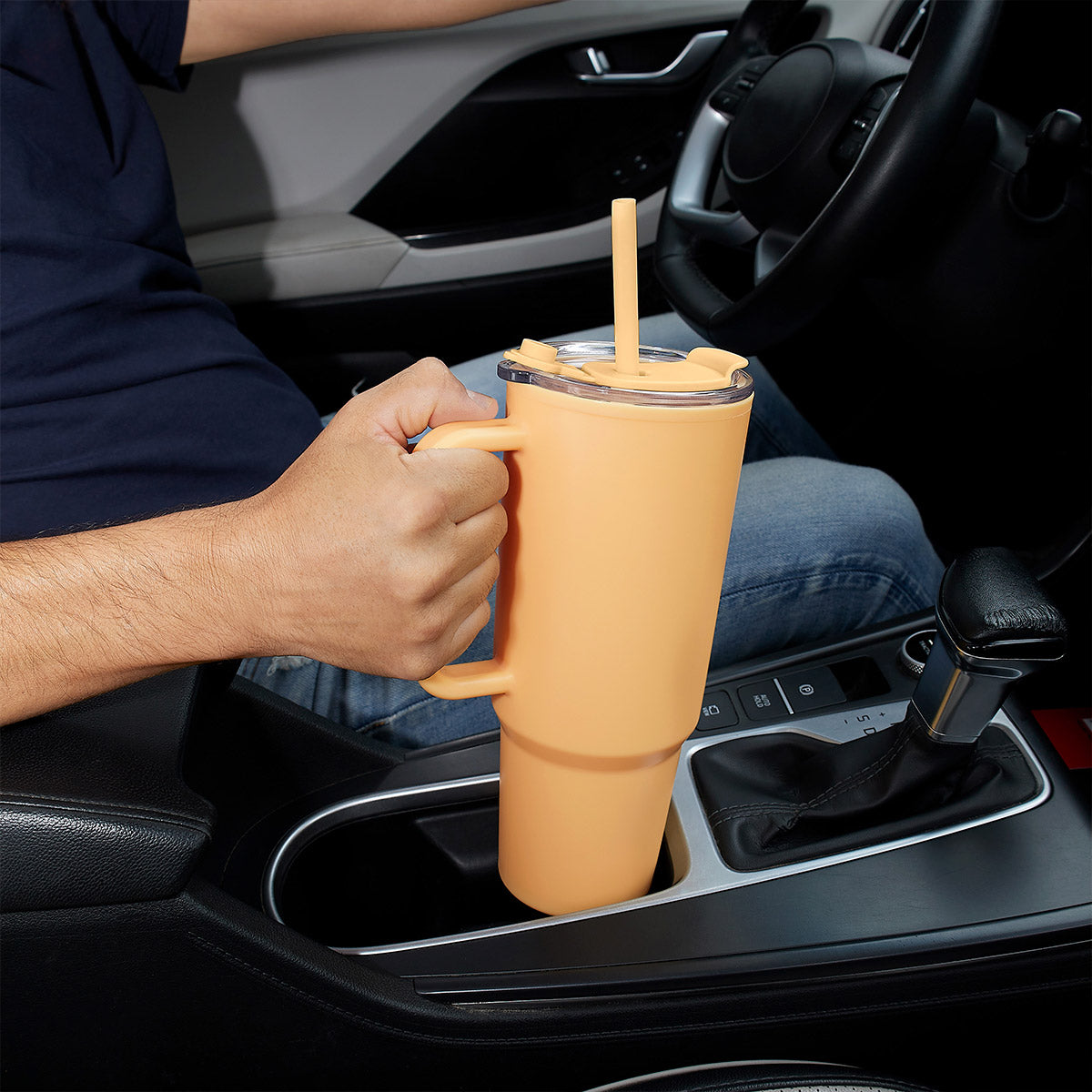 Doble pared. Pared interna y externa de plástico. Tapa de plástico con cierre de push. Sobretapa de silicón con ranura especial para popote. Incluye popote y caja individual.
