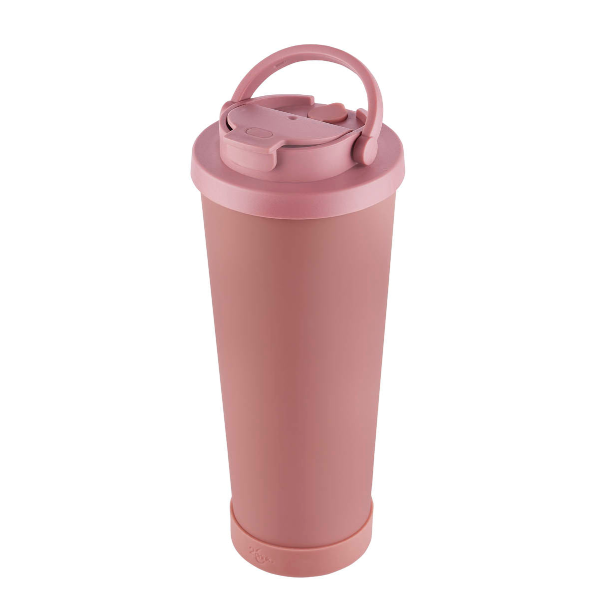 Termo doble pared. Cerrado al vacío. Pared interna y externa acero inoxidable. Terminado tipo rubber que lo hace suave al tacto. Su tapa versátil con cierre de rosca te permite disfrutar de tus bebidas de dos maneras diferentes; por medio de su convencional sobre tapa con sistema push o bien, usando la ranura para popote con tapón. Incluye un popote con doble ancho de plástico, ideal para cualquier bebida. Además, cuenta con un cepillo, que te ayudará a mantenerlo limpio. Su diseño incorpora un asa que facilita llevarlo a todos lados y su base removible de silicón antiderrapante, evitará al máximo raspaduras. Mantiene la temperatura caliente por 6 hrs y la temperatura fría por 12 hrs. Capacidad de 24 Oz. Base de 7 cm de diámetro. Incluye caja individual.