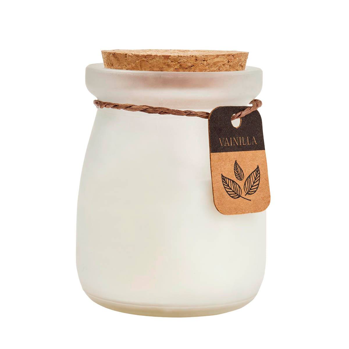 Vela decorativa con tapa de corcho y acabado tipo frosty. A pesar de su tamaño compacto, esta vela ofrece un aroma duradero que crea un ambiente cálido y relajante. Perfecta para acompañarte en momentos de meditación, relajación o simplemente para añadir un toque de serenidad a tu hogar. Aroma a vainilla. Incluye caja individual.